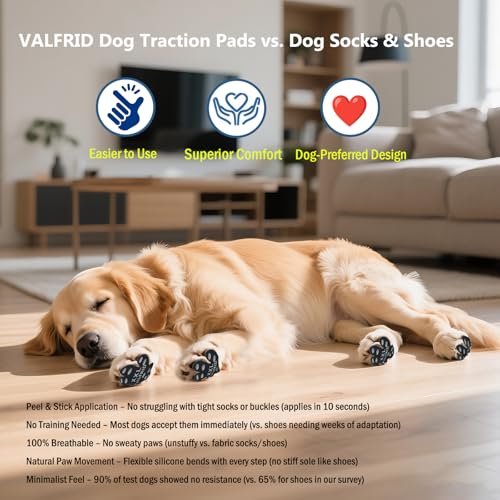 Specification: ‌VALFRID Dog Paw Pads for Dogs Traction,Toe Grips for Senior Dogs,Paw Stickers Strong Adhesive,Provides Traction on Slippery Hardwood Floor Multicolor M 48 Pieces